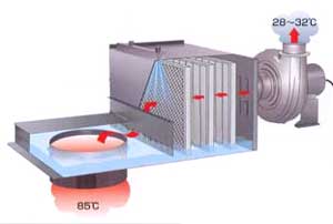 排気、冷却補集するため、油煙温度を28~32℃まで低下させます。